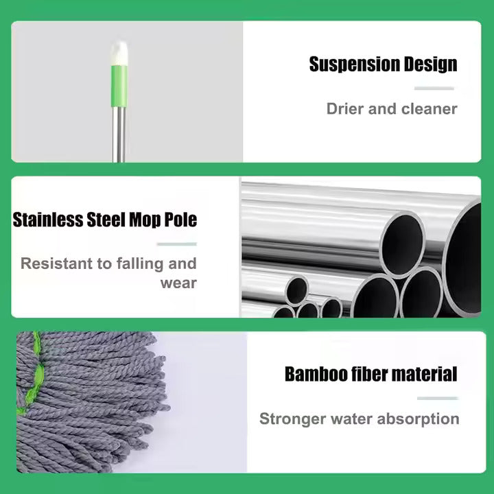 - Super Absorbent Microfiber Mop Head: Made with ultra-fine microfiber, this mop head absorbs even the toughest stains, hair, and dirt, leaving your floors spotless.