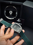 Indulge in the pinnacle of luxury with the Hublot Square Army Design watch. Crafted with premium master lock and straps, this watch guarantees unparalleled quality. Its sleek and eye-catching design adds a touch of elegance to any outfit. Don't settle for less when you can have the best.
