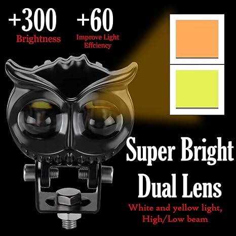 Experience the power of a dual-color fog light shaped like an owl, designed to guide your motorcycle journeys with style and precision. 🛵 Whether it's daytime or nighttime, these lights switch between colors effortlessly, ensuring maximum visibility. 💡