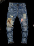 Random Position Bear Embroidery Patchwork Denim Jeans